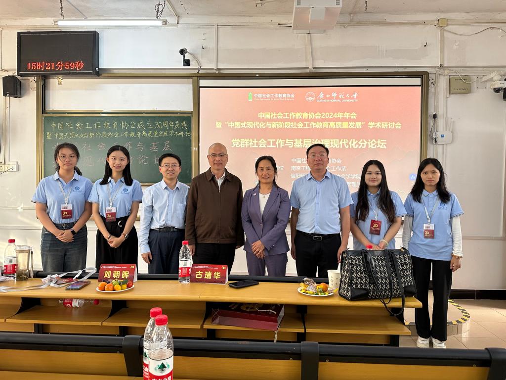 会议期间,我校与南京工程学院在广西师范大学(育才校区)联合举办“党群社会工作与基层治理现代化分论坛”。开车漫画 院长古瑞华教授做分论坛开幕式主题发言。来自北京大学、华中师范大学、重庆工商大学、河南财经政法大学等高校和南京红叶社会工作服务社、深圳市温馨社工服务中心等社会组织的77位专家、学者和实务界人士通过现场发言、圆桌沙龙、论文评选等形式,围绕“党建引领与基层治理”“社工优势与群众工作”“社区治理与技术赋能”“居民服务与社工实务”等议题进行了学术交流。