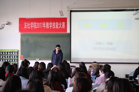 周波博士从社会热点问题“留守老人的无缘死”现象出发,引导学生注意到老年期死亡议题的重要性,进而提炼关键词,结合教材和日常生活中的民间习俗、宗教信仰等内容帮助学生理解该议题,最终指出社会工作学生在实务中需要运用多方面的资源帮助案主进行社会连结,此外也要思考如何完成大学生自身的死亡教育。课后,学生积极反馈了对此次授课的感受,张义明副院长、贾义保副院长和各位老师也对周老师的教学予以肯定,并指出一些不足之处。教学技能大赛的开展,真正促进了教师之间、教师与学生之间的互动和学习,实现了教学相长。