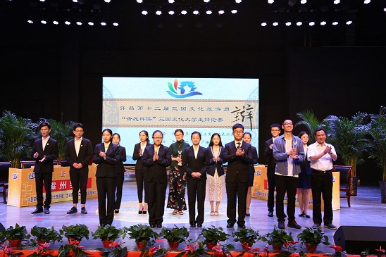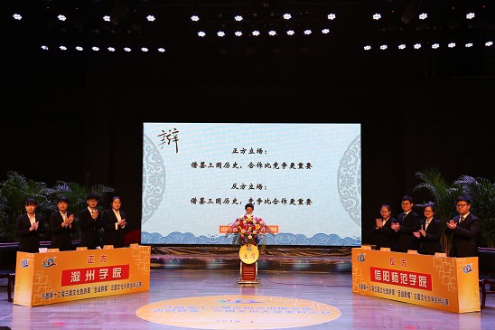 时间:2019-06-13 12:30 来源: 作者: 阅读: 次4月29日,由许昌第十二届三国文化旅游周活动组委会主办,许昌学院、许昌广播电视台承办的许昌第十二届三国文化旅游周“舌战群儒”大学生辩论赛在许昌电视台演播大厅圆满落幕。滁州学院代表队获得冠军,信阳师范学院代表队荣获亚军,长江大学及许昌学院代表队并列季军。许昌市人大常委会副主任艾祥涛,许昌学院党委副书记孙海,许昌广播电视台党委书记、台长李海彬等领导与许昌市民、许昌学院师生一同观看了辩论赛决赛。