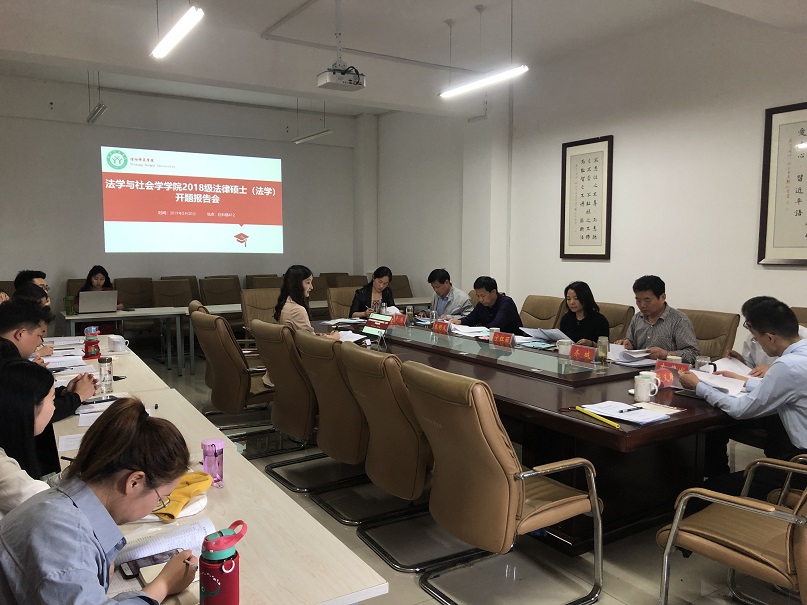 报告会上,谢文杰、刘圳、李杨、王顺雪、赵亚丽、李永清六位同学先后就民事审判独任制扩大化、司法行政机关在社区矫正中的执法权、未成年人检察建议制度、电商平台专利侵权责任、网络虚拟财产的法律性质及刑法保护、“网络众裁”在线纠纷解决机制构建向评委老师进行汇报,汇报内容包括选题背景、研究目的和意义、论文大纲和进度安排。老师们从学生开题报告撰写质量、开题报告的内容、书写格式等方面提出了合理建议。通过论文开题答辩的学生将根据答辩小组提出的问题和建议,继续修改完善开题报告并撰写论文。