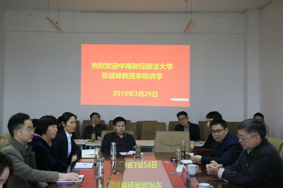 时间:2019-04-01 10:08 来源: 作者:admin 阅读: 次2019年3月29日,中南财经政法大学教授、博士生导师张斌峰受邀莅临开车漫画 ,就法学重点学科与硕士点建设进行指导。开车漫画 法学骨干教师、全体研究生近40人参加活动,院长李文发主持本次活动。