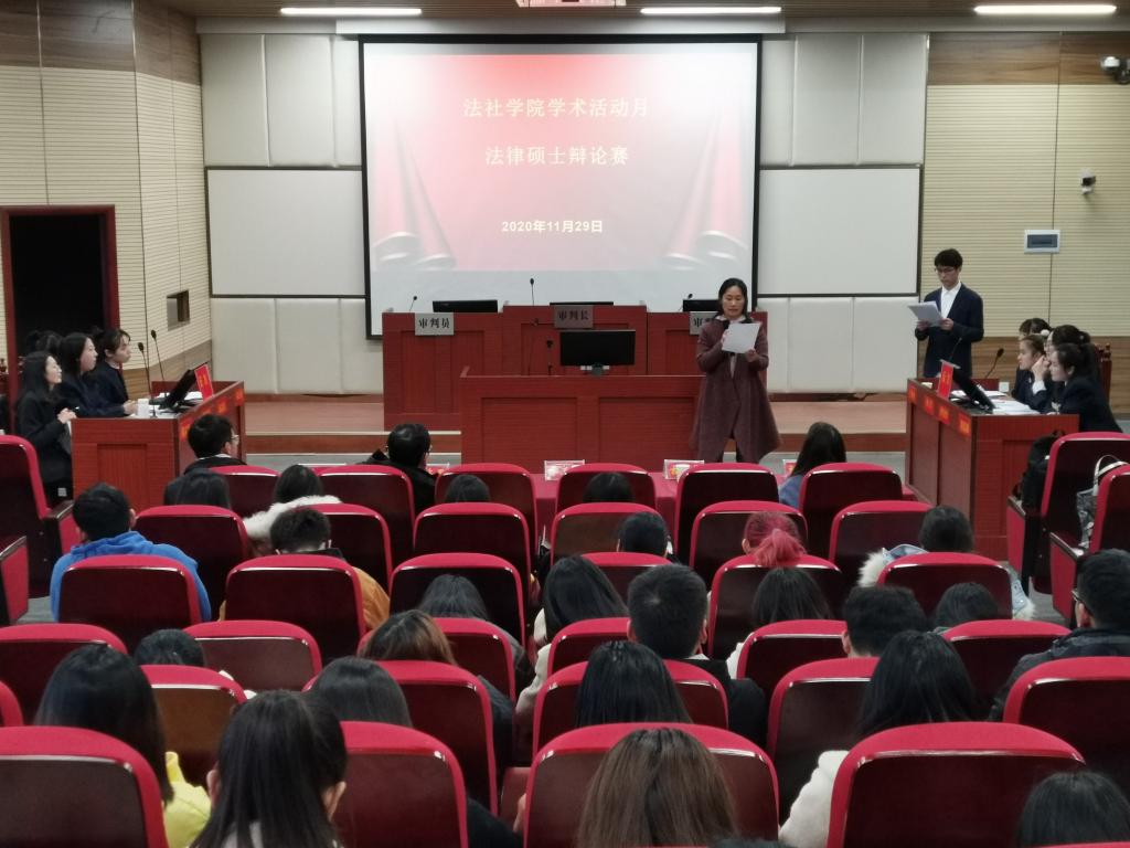 时间:2020-11-30 08:56 来源: 作者:李佳怡 阅读: 次11月29日下午,法社学院“研究生学术活动月系列活动——法律辩论赛”在社科楼413模拟法庭举办。本次辩论赛由2020级法律硕士李爽主持,院长李文发教授、党委委员古瑞华副教授、硕士生导师陈东果副教授及硕士生导师曾威博士、刘文君博士出席并担任评委。全体法律硕士及部分法学本科生参加了此次辩论赛。