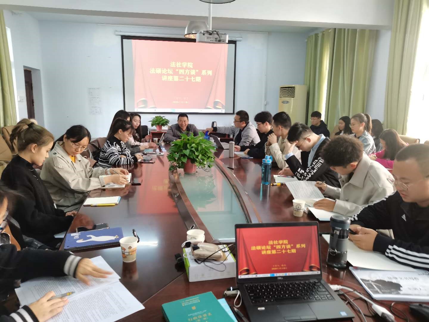 时间:2020-11-11 16:33 来源: 作者:王保艳 阅读: 次11月9日上午,法社学院法硕论坛暨“四方谈”第二十七期在教八楼研究生会成功举办。本期讲座的主题是“刑事法律伦理——入罪或出罪”,由法治与社会管理教研室党支部书记、主任陈杰博士担任主讲人,刘文君博士担任点评人。2019级和2020级法律硕士研究生聆听了本次讲座。