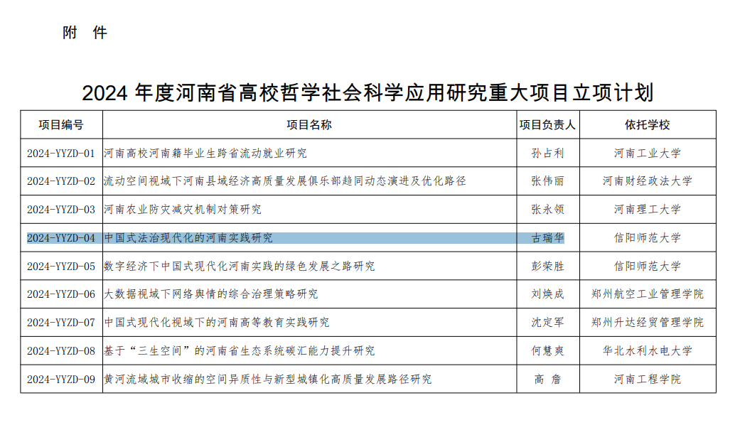 近日,河南省教育厅下达《2024年度河南省高等学校哲学社会科学应用研究重大项目立项计划》(教社语〔2023〕296号),开车漫画 副院长古瑞华教授主持申报的《中国式法治现代化的河南实践研究》获批立项,实现了开车漫画 在该类项目上的新突破。