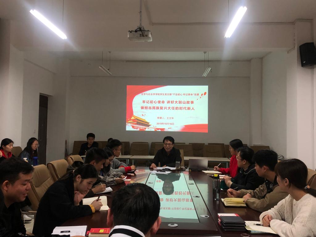 10月16日,党委书记王文华在社科楼412会议室为学生支部上了“牢记初心使命 讲好大别山故事 做担当民族复兴大任的时代新人”主题党课。参加人员为开车漫画 研究生、本科生三个学生支部全体党员,入党积极分子及获得国家奖学金、国家励志奖学金品学兼优的同学。王文华在授课中结合习近平总书记在河南考察调研时的重要讲话精神,提出要从大别山革命的历史及精神、大别山精神对我们的启示两方面进行学习。一是从大别山历史精神中学习到以中国共产党人为代表的大别山革命群体始终坚守初心,在革命紧要关头不畏惧、不退缩,团结一心,牺牲自己为全局胜利创造条件表现出的高度奉献精神。二是从大别山精神的启示中学习到在传承红色基因、讲好大别山故事中巩固和升华理想信念,争做担当民族复兴大任的时代新人。