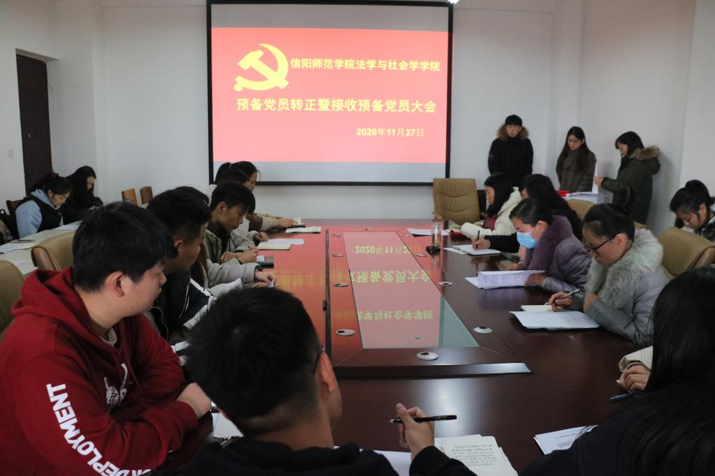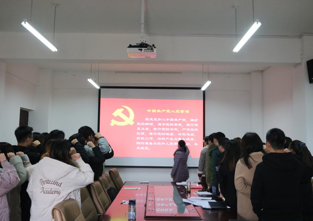 本次大会围绕“预备党员的考察汇报”和“表决通过预备党员”两个议程展开。在预备党员转正环节,由申请人代表陈晨宣读转正申请书,表明自己加入中国共产党的决心和态度。入党介绍人笔河茜、黄思谦介绍所联系申请人一年来的表现以及对预备党员教育和考察的情况并做出评价意见。介绍人认为,陈晨等十九位同志无生活作风问题且认真遵守并践行党的精神,考察结果优异。经与会党员投票表决,陈晨等十九位同志顺利转为中共正式党员,并由各学生支部书记宣读支部大会决议。在第二议程预备党员接收大会中,申请人代表马思凡宣读入党志愿书,介绍人丁丹娜、吴雪莹、王春浩、笔河茜介绍所联系申请人表现,并做出评价意见。经与会党员一致投票表决,同意接收马思凡等十八名同志为中共预备党员。在接受预备党员后,全体党员及预备党员面对党旗进行了入党宣誓。最后,樊德玲发表讲话,她指出,学生党员要以优秀党员的标准严格要求自己,坚定不移的追随党的步伐,为党增光添彩,作为一名党员,要从学习上、思想上入党,切实发挥党员的先锋模范作用。