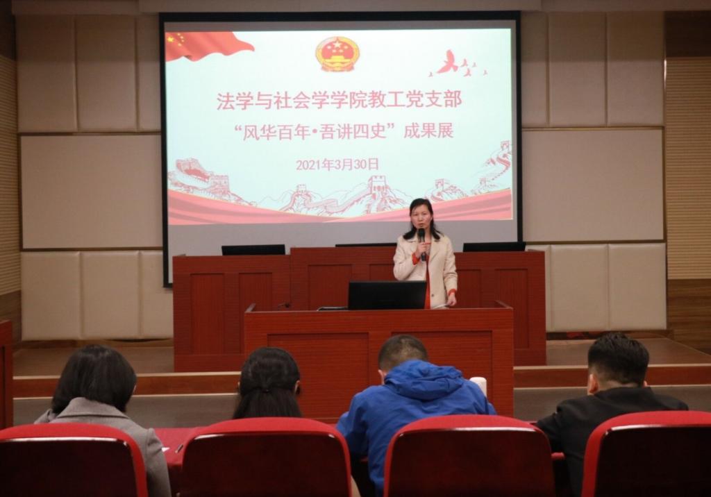 参赛教师们都经历了精细的排练和认真的准备。姜帅合带来诗朗诵《月光下的中国》,展现了月光下一个宁静、温柔、祥和、美丽的中国;祁中山分享了关于“党史学习要用好用活地方性知识”的心得,活灵活现;杨胜利带来《彭雪枫的情书》,将彭雪枫凄美、浪漫的爱情故事娓娓道来;歌曲《红旗飘飘》由刘海晓演绎,虽为清唱,歌声激情澎湃;再现了抗日战争时期血与泪交织的历史的《吴焕先的故事》则由邱海洋讲述;杜连峰以第一人称的口吻讲述了其姥姥的经历——《我的身世》,故事情真意切。最后,刘文君、梅傲寒、李雪莹带来合唱《我和我的祖国》在会议室中久久回荡。最终,《我和我的祖国》、《月光下的中国》、《吴焕先的故事》分别荣获一二三等奖。至此,比赛落下帷幕,武向朋老师为大家做点评总结,她表示在接下来的日子中,我们应更加积极学习四史,将理论与实践更好的结合起来。