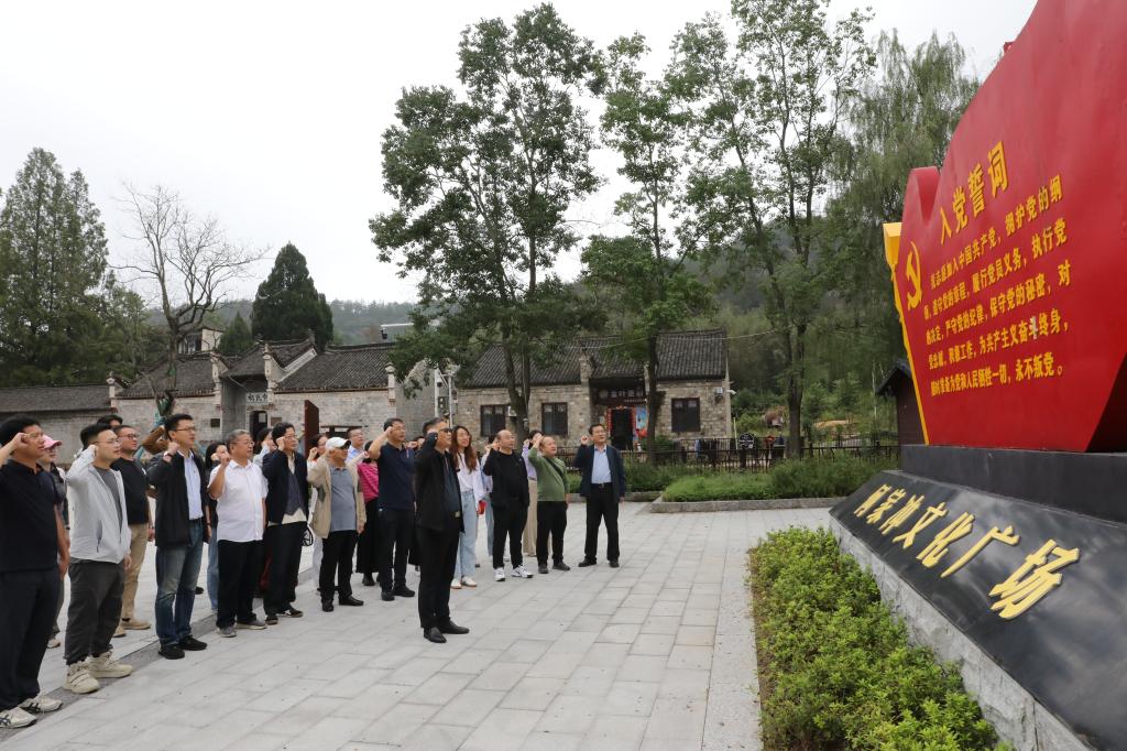 在何家冲文化广场,全体党员面对党旗,在开车漫画 党委书记尚红林的带领下,庄严重温入党誓词,铿锵誓言表达了不忘初心、牢记使命的坚定决心。随后,大家齐聚百年银杏树下,聆听当年红二十五军在此集结誓师的传奇故事,使同志们对长征精神有了更切身的体会。
