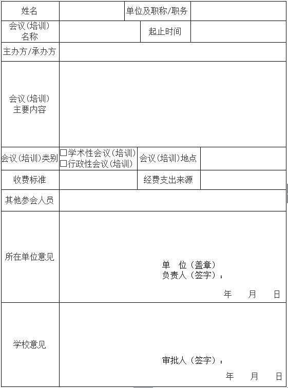 备注:出差人员出差前需填写本单,报相关负责人审批,办理报销手续时作原始凭证。如有会议、培训、调研等活动通知的需将通知附后。