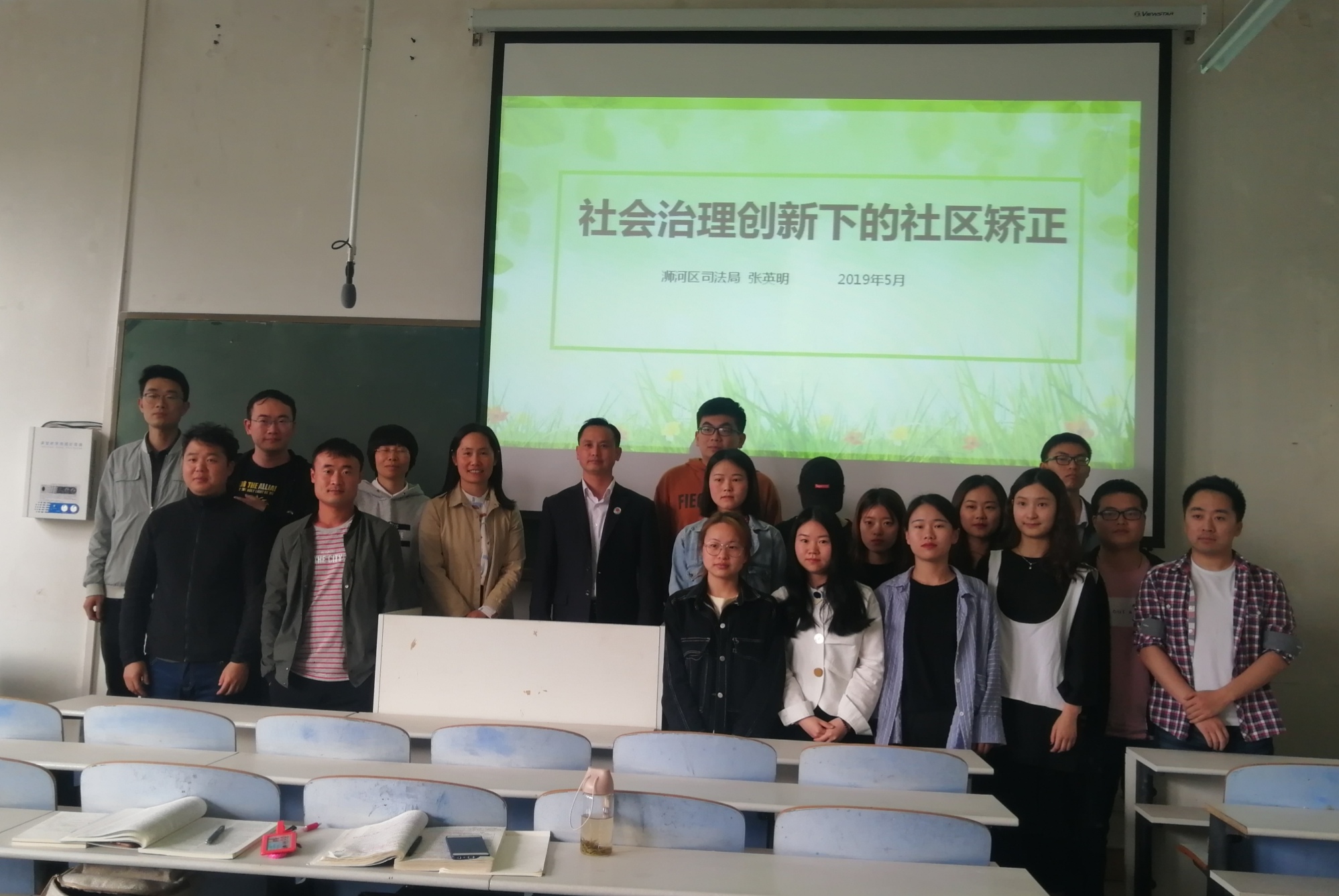 讲座伊始,张英明结合开车漫画 开设的《社会工作法学》课程,从司法局社区矫正工作展开,全面介绍了社区矫正的历史沿革以及我国的社区矫正现状;结合自己从信阳师范学院毕业到浉河区最偏远的基层司法所、再到现在的工作岗位的一路成长经历,详细介绍了浉河区社区矫正工作情况;结合相关案例谈了对于社会治理创新下的社区矫正的思考。