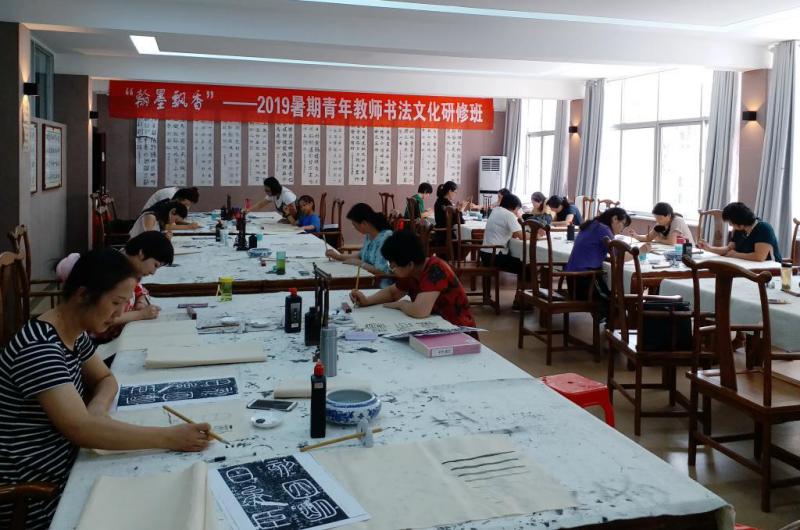 7月22日至28日,开车漫画 和教师教育学院分工会联合举办了“翰墨飘香”——2019年暑期青年教师书法文化研修班,活动邀请了三位专业书法教师授课辅导,30余名青年教师参加培训。
