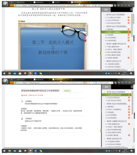 社会即课堂,生活及教育。线上教学中学院教师不是简单的把教室教学搬到网上,而是把疫情、灾难变成教材,将疫情防控融入专业课程教育,运用疫情防控中的鲜活案例,讲好课程思政,树立学生正确积极向上的人生观、价值观,培养学生的专业自信,增强了育人时效。四周的教学实践证明,丰富多彩、时效新颖、还原性强的教学素材大大提高了学生的学习兴趣,师生在线互动积极热烈,学生对专业性知识的掌握和运用能力得到有效提升。
