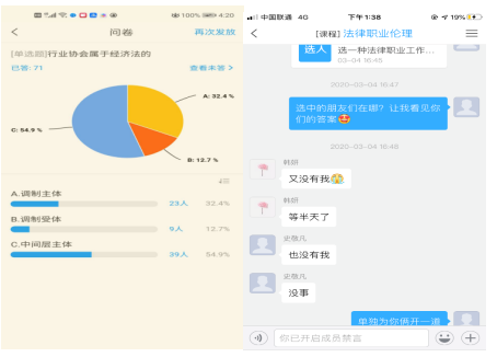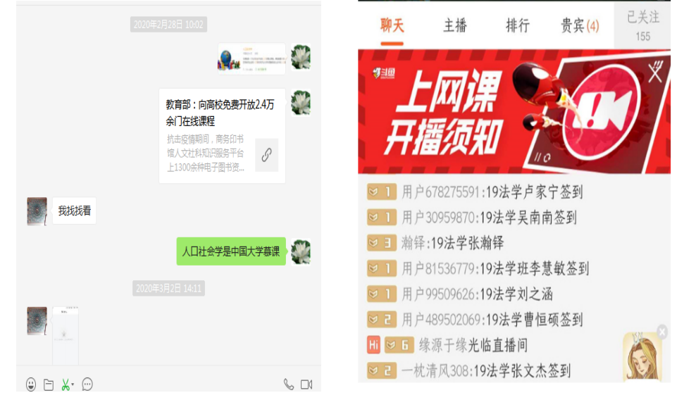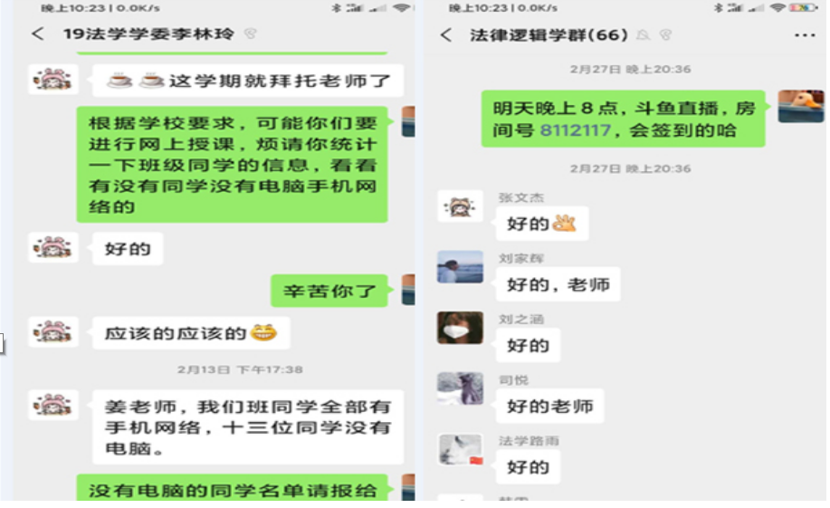 疫情阻断了师生返校的路,但不能阻断学院老师们对教学的热情。大家克服困难,互助帮扶,各寻奇招,积极备战在线教学。根据线上教学的特殊性,学院教师一方面纵向挖掘。通过深度开发网络平台抢答、摇号选人、头像签到、名师讲座等趣味互动模式,消解网上教学非接触互动的弱点,有效的提高了同学们的学习和讨论热情;另一方面横向拓展。通过综合运用超星学习通、钉钉、腾讯会议、斗鱼直播、微信等平台,开展了线上直播教学、速课教学、MOOC教学、微信/QQ讨论教学等形式,有效的保证了不同情况下的教学效果。线上教学老师对老师既是挑战,也是机遇,为老师们充分了解新的教学模式,为将来建设好网络课程和依托网络进行课堂教学创新奠定了基础。