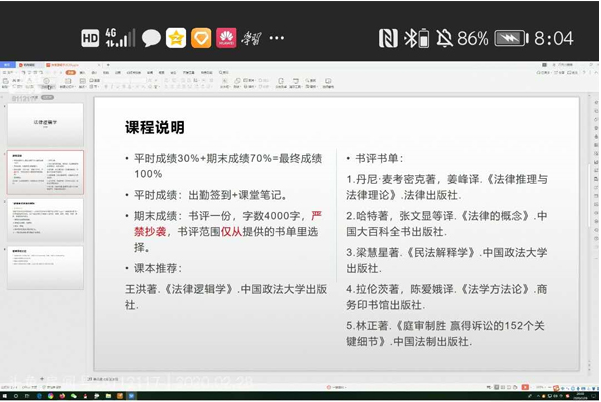 时间:2020-03-22 11:35 来源: 作者: 阅读: 次教学是教师的本职工作,做好平凡的本职工作,便是在自己的岗位上书写“抗疫”担当。姜帅合老师在2020春季学期担任2019级法学本科生《法律逻辑学》课程的教学工作。在接到学校疫情防控期间“停课不停教”的通知后,她积极主动参与学校教务处和学院组织的各种软件平台的培训交流,同时,发动朋友和家人配合,一起测试平台,开展网络实操演练,模拟网络教学的全过程,并随时和同事们互通有无,交换使用心得,努力适应教学方式的转变。