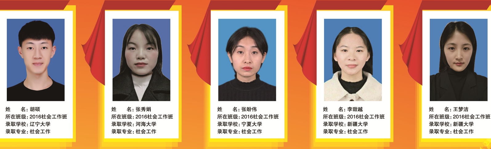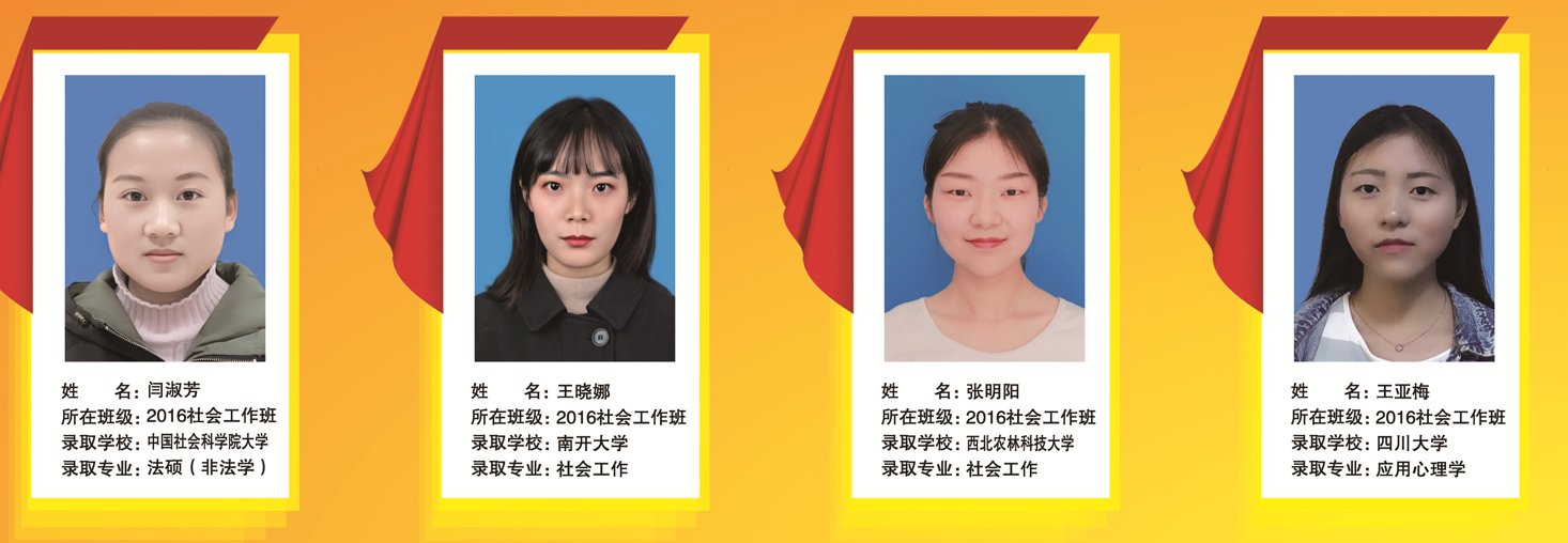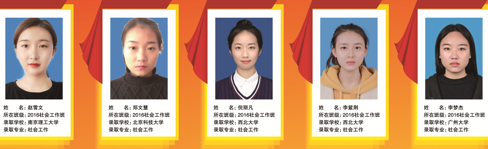 一分耕耘,一分收获。法社学院2020届毕业生总人数为156人,53名同学在2020年全国硕士研究生招生考试中脱颖而出,多数同学成为了双一流大学的硕士研究生,获得了继续深造的机会。全院录取率为33.7%,为历年来最好成绩。其中,法学专业有13名同学被录取,录取率达16.25%,社会工作专业有40名同学被录取,录取率达52.63%。