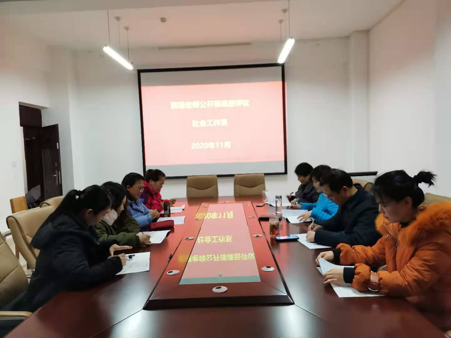 观摩课结束后,听课教师进行评课活动。大家对蔡瑾老师的PPT制作、教态、教学语言、案例教学法的运用、课程思政元素的挖掘和应用进行了充分的肯定,同时指出了课堂教学中存在互动氛围不足等问题。老师们还围绕课程思政、翻转课堂、线上线下混合式教学等主题就社会工作专业课程教学工作做了深入交流。