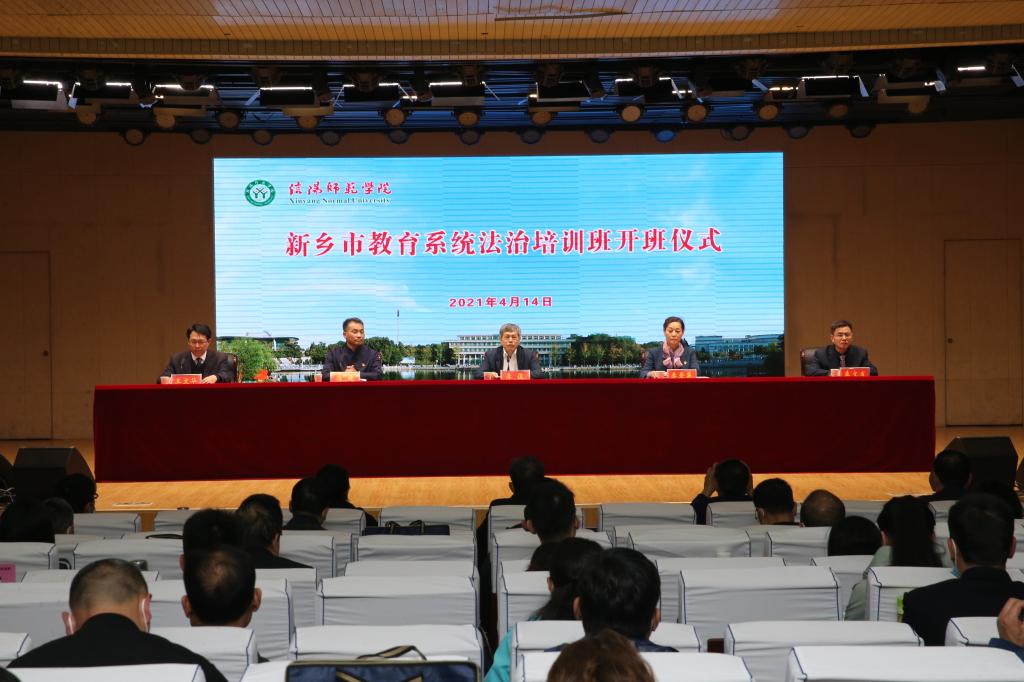 时间:2021-04-16 15:02 来源: 作者:古瑞华 阅读: 次4月14日,为深入学习习近平法治思想,进一步提升机关公务员、学校法治副校长和道德与法治教师法律素养,贯彻落实依法行政和依法治教工作,新乡市教育系统法治培训班在我校开班。校长李俊,新乡市委全面依法治市委员会办公室专职副主任李爱萍,新乡市教育局党组成员、一级调研员、副局长冯建,新乡市教育局机关公务员、县(市)区法治工作科(股)长、市、县两级学校法治主管校长和法治名师共200人参加开班式。法社学院党委书记王文华主持仪式。