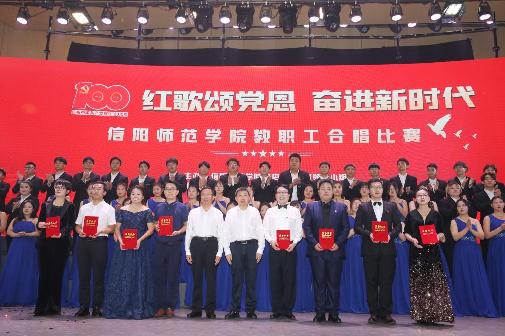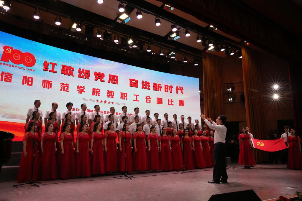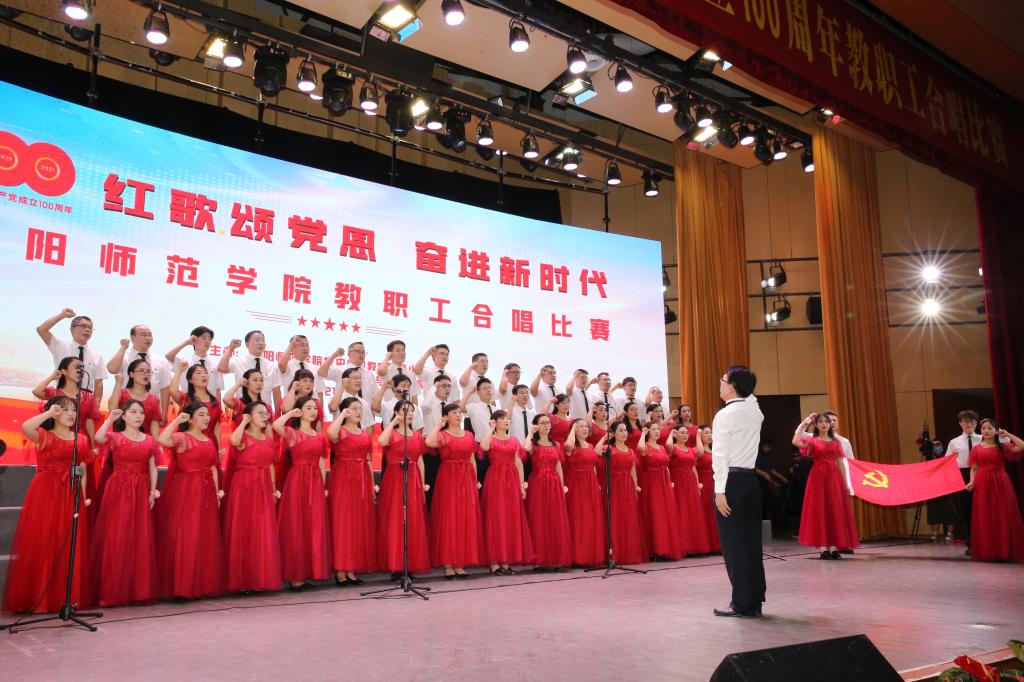时间:2021-06-23 15:14 来源: 作者:袁艳红 张霖 阅读: 次漫漫征途忆峥嵘岁月,声声嘹亮颂百年初心。6月22日下午,由信阳师范学院党史学习教育领导小组主办的庆祝中国共产党建党100周年“红歌颂党恩,奋进新时代”教职工合唱比赛在艺术楼音乐厅隆重举行。来自全校各单位总共25支代表队参加比赛,法社学院教工合唱团表现优异,荣获集体二等奖和最佳指挥奖。