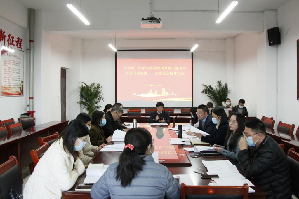 实践教学中心党支部、法学系党支部、法治与社会管理教研室党支部等教工支部利用“三会一课时间”,认真学习省第十一次党代会精神。