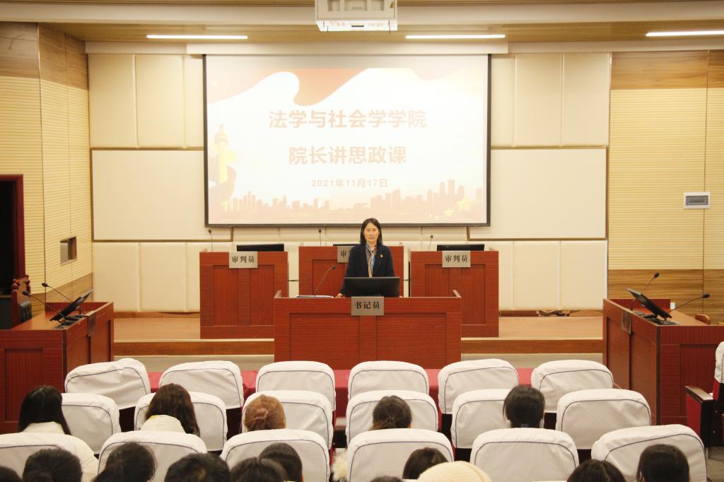 11月17日,古瑞华副院长在社科楼413教室“认真学习十九届六中全会精神”为主题的思政课。她说,党的十九届六中全会是党在成立一百年之际,党领导人民实现第一个百年奋斗目标、向着实现第二个百年奋斗目标迈进的重要历史关头所召开的一次会议,会议全面总结了我党百年奋斗的巨大成就和历史经验。我们要认真学习领会十九届六中全会深刻而丰富的精神内涵。她强调,党的百年奋斗的历史经验告诉我们,必须要坚持党的领导,坚持人民至上,坚持独立自主,坚持中国道路,坚持开拓创新。她鼓励同学们要不断提高自身综合素质,努力成为担当民族复兴大任的时代新人。