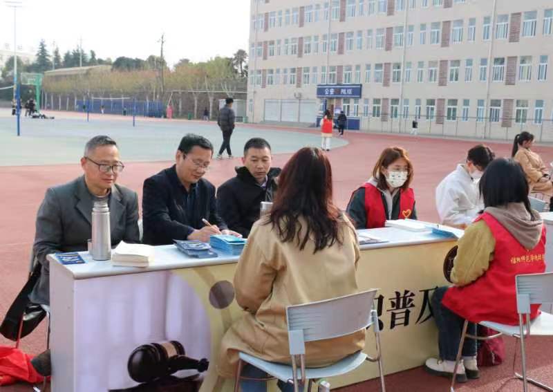 以学院实践教学中心“双师型”教师张宇、陈杰、陈东果、何强、郭峰,法律专业硕士研究生和青年法学会同学组成的志愿服务团在活动现场为每一位前来咨询的师生提供了专业、周到、热情的法律咨询服务。咨询内容主要涉及消费维权、保险赔偿、劳务合同、民间借贷等方面的法律问题。同时,志愿者们向在场的师生发放了电信诈骗防范和普法知识宣传手册。