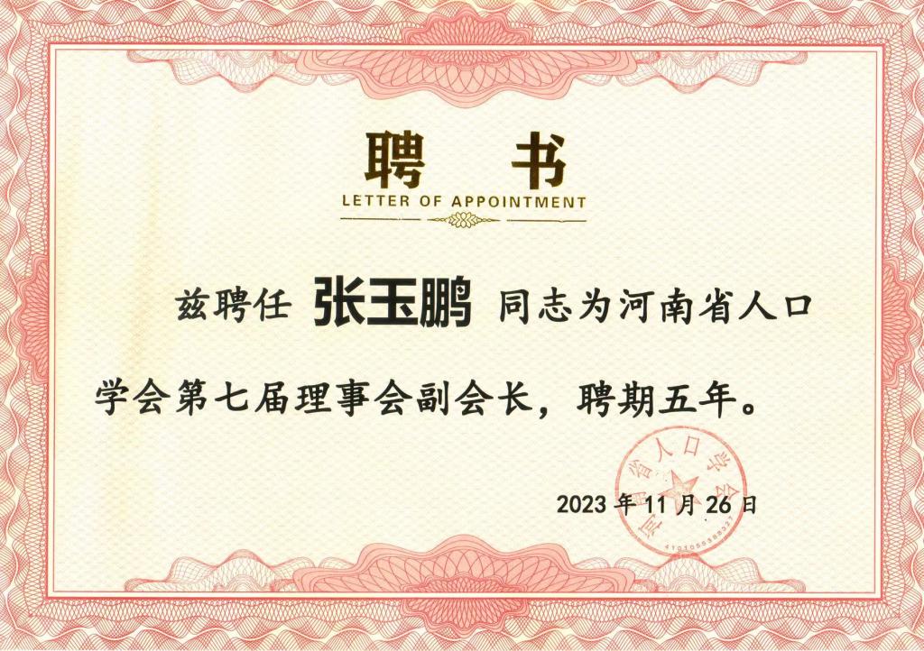 河南省人口学会作为省级学会,长期开展人口科学领域的人口理论研究、学术交流、科学普及、咨询服务、编辑出版、业务培训,为政府建言献策,充分发挥了行业学会的职能作用。副院长张玉鹏当选第七届理事会副会长,将对学院的学科发展、科学研究、社会服务发展起到一定的推动作用。