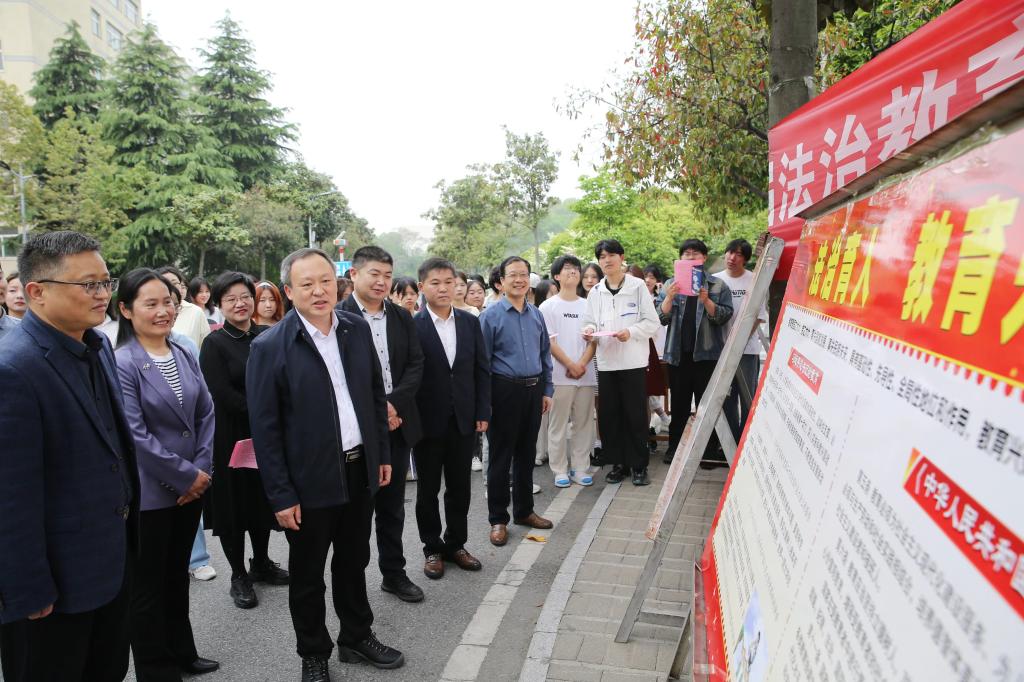 启动仪式上,与会人员共同参观了法治教育宣传周主题展览,认真翻阅了法治宣传单。涂友超与参加普法宣传的师生进行了亲切交谈。他指出,要紧密围绕学习宣传贯彻习近平法治思想,通过邀请法律专家开展辅导报告等多种形式重点面向青年学生开展主题宣讲,同时结合高校法治教育目标,推动法治教育进教材、进课堂、进头脑,引导广大师生人人知法、人人守法,切实提升师生法治意识和法治素养。与会师生纷纷表示,要以实际行动将法治教育内化于心、外化于行,自觉成为法治教育的宣传员与践行者。