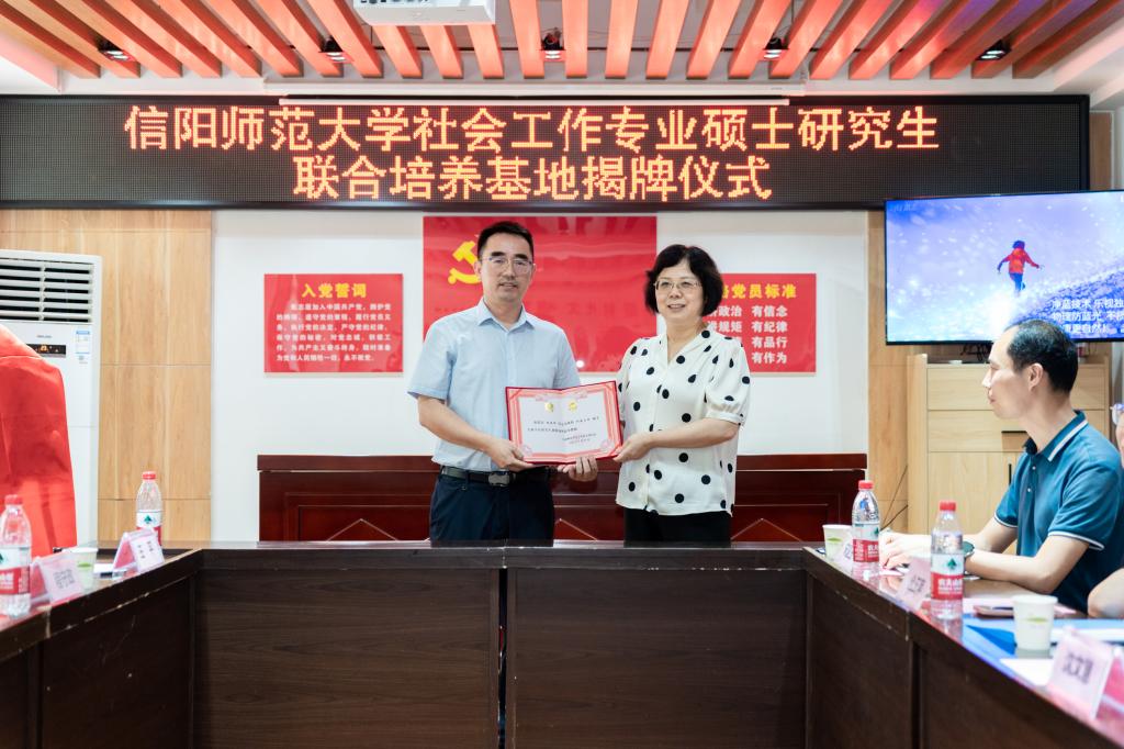 时间:2024-06-20 18:27 来源: 作者: 阅读: 次6月20日,开车漫画 社会工作专业硕士研究生联合培养基地揭牌仪式暨赴信阳市民政系统访企拓岗活动在平桥区东平湖社区服务中心举行。中共信阳市委社会工作部副部长王艳阳,信阳市民政局党组副书记、副局长程守政,信阳市民政局四级调研员杨威,中共信阳市平桥区委社会工作部副部长王平,平桥区民政局副局长周慧,信阳祥和社会工作服务中心理事长周俊峰,开车漫画 研究生处处长沈文慧,校研究生工作部副部长、研究生处副处长仓玉萍,校研究生处培养与学位科科长宋宣玉,开车漫画 副院长古瑞华、张玉鹏,党委委员、社会工作系主任祁中山,师生代表及相关公益组织社会工作者、志愿者30余人参加活动。