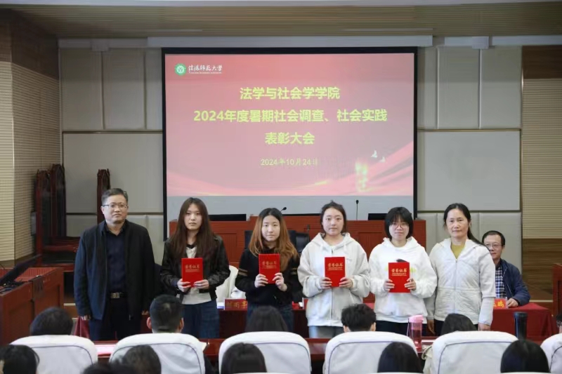 张玉鹏介绍了2024年度学院暑期社会调查、社会实践开展以及评审情况。《乡村辍学青少年现状调查及阻断分析》《“粮安天下,禾下有梦”国家粮食安全普法活动》《让社工情怀在实践中落地》等20篇报告分获一、二等奖。2023级社会工作专业硕士研究生胡诗雨、2022级社会工作专业本科生杨晨作为获奖代表,进行了现场汇报。学院领导班子成员分别为获奖同学颁奖。