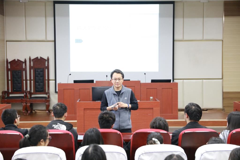 大学生心理健康中心主任、校党委学生工作部(处)副部(处)长李贵杰为开车漫画 师生作专题讲座