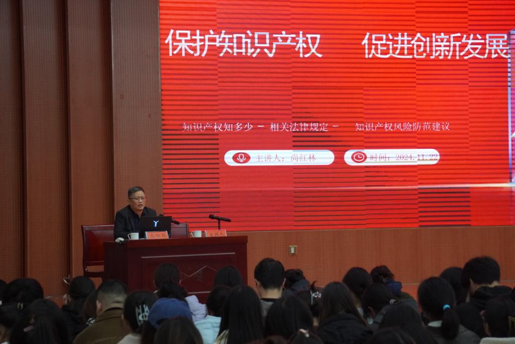 尚红林以世界知识产权日为切入点,结合大学生身边的实际案例,详细阐述了知识产权的内容、相关法律法规以及风险防范措施。尚红林指出,在当前全球知识经济发展的新格局下,保护知识产权、激发创新发展新活力已成为全社会的广泛共识。青年学生作为创新的主力军和知识产权的潜在受益者,提高对知识产权的认识和重视程度尤为关键。尚红林强调,在建设创新型国家和科技强国的时代背景下,保护知识产权实质上就是保护创新成果。他鼓励新时代的青年学生要深入学习知识产权法,不断增强自身的知识产权保护意识,积极践行知识产权保护的理念并呼吁大家共同努力,营造尊重知识、崇尚科学、保护知识产权的良好社会氛围,为推动创新发展和建设创新型国家贡献自己的青春力量。