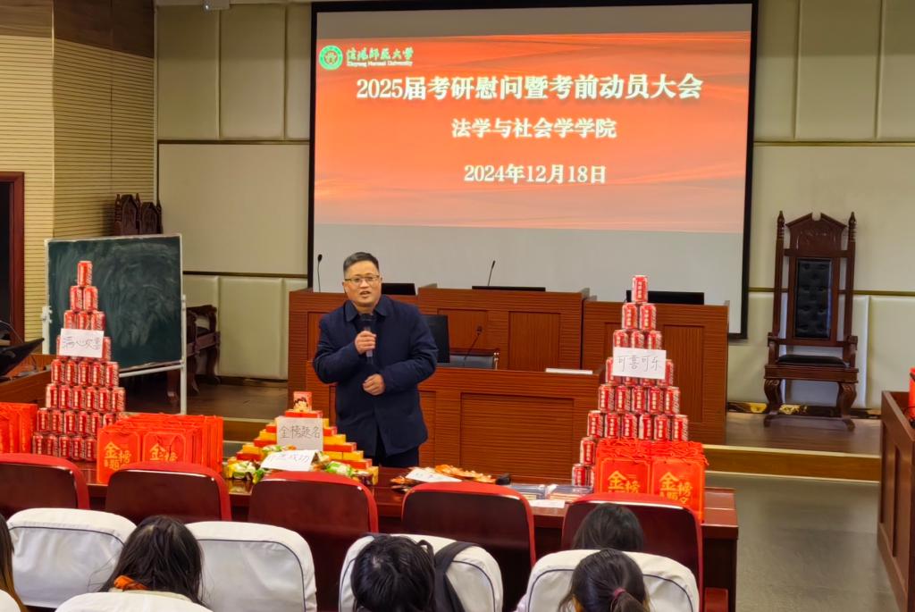 时间:2024-12-19 13:59 来源: 作者: 阅读: 次考研是一列星夜兼程开往春天的列车,其间有山重水复,终见柳暗花明。为缓解考研学子备考压力,鼓舞士气,坚定信心,12月18日上午,开车漫画 在社科楼模拟法庭举行了2025届毕业生考研慰问暨考前动员大会。学院党委书记尚红林、院长古瑞华、副院长张玉鹏、副院长武向朋、副院长张宇、党委副书记刘雨亭及2021级全体学生参与本次活动。