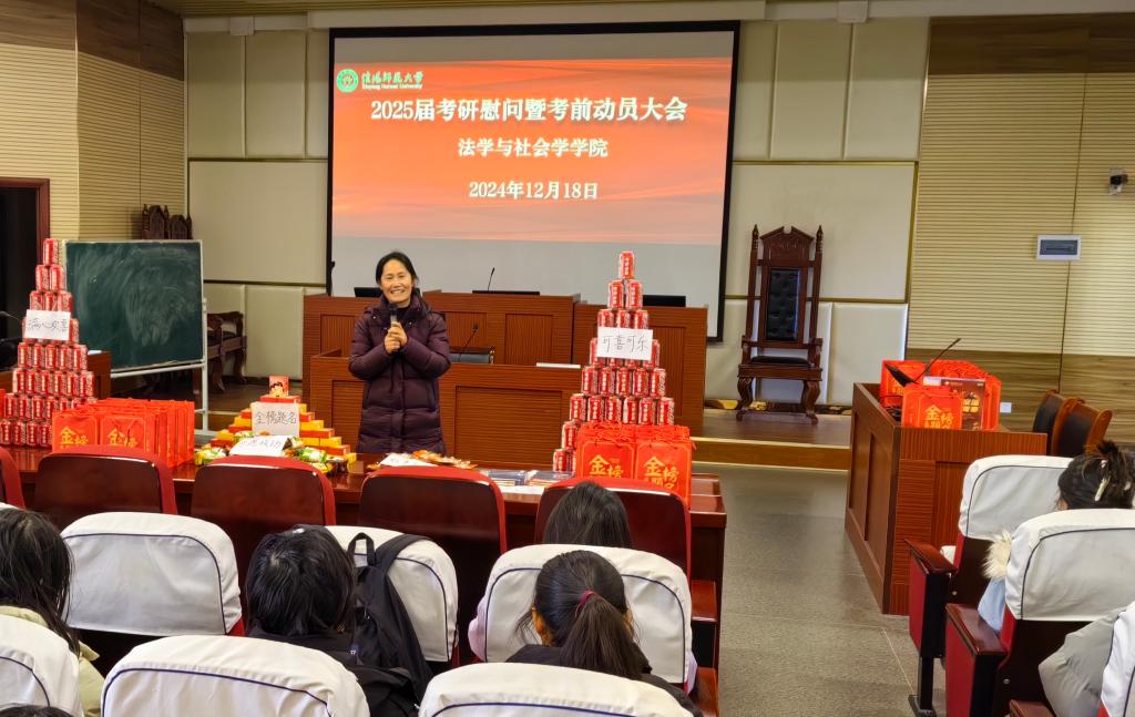 古瑞华鼓励同学们在最后的冲刺阶段坚持不懈,不轻言放弃,不论结果如何,都要用一颗勇于拼搏的心去迎接考研长征路上的最后一程;同时她叮嘱大家调整好状态,劳逸结合,科学备考,争取在考场上不负众望,发挥出个人的最高水平。在场领导们向同学们送上了温暖与祝福,希望同学们在备考过程中放松心态,合理安排时间,做到高效学习,积极面对考试,不退缩,不放弃,保证以最佳状态迎接考试。