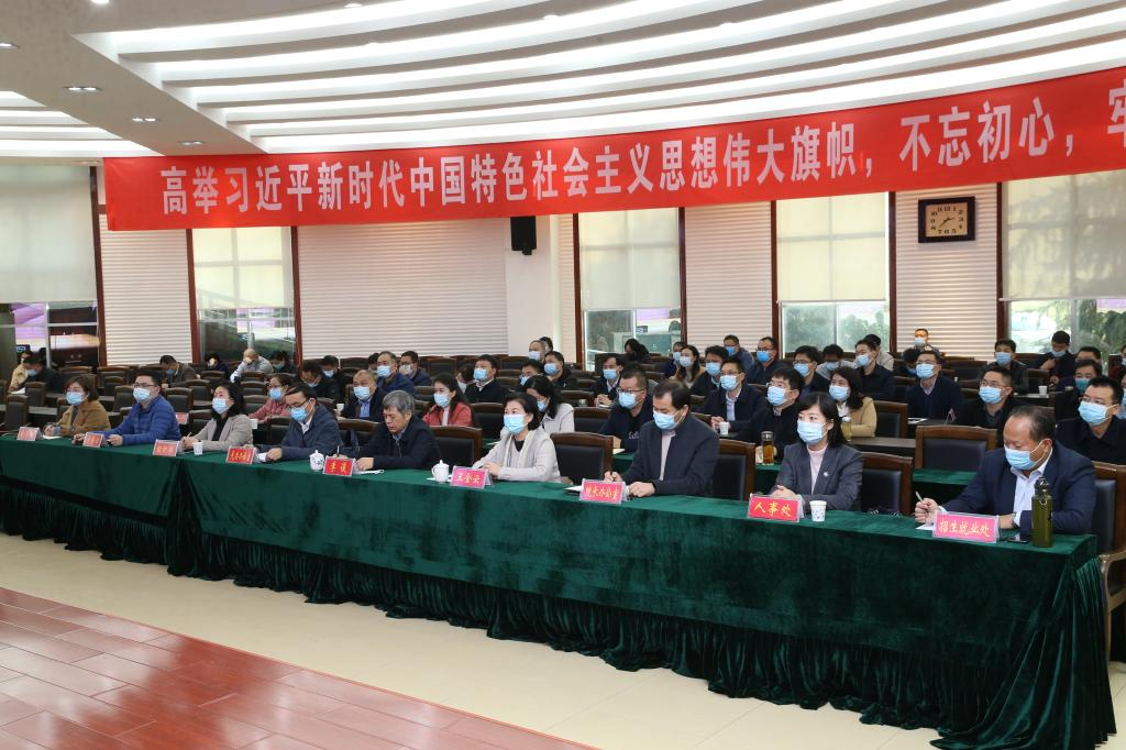 时间:2021-11-22 18:34 来源: 作者: 阅读: 次11月19日,教育部召开2022届全国普通高校毕业生就业创业工作视频会议,部署安排2022届全国普通高校毕业生就业创业工作。教育部党组书记、部长怀进鹏、教育部副部长翁铁慧、人力资源和社会保障部副部长李忠出席会议并做重要讲话。我校在艺术楼第八会议室设立分会场,集中收看会议视频直播。校长李俊、副校长王金云出席,学校就业创业工作领导小组成员、各学院就业创业工作领导小组成员参加了视频会。
